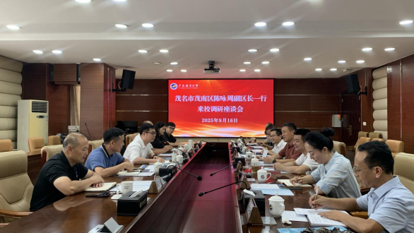 9月16日,茂名市茂南区副区长陈咏周一行来校进行调研。学校党委常委、副校长鲁义善参加调研座谈会,会议由科学技术部副部长钟赛意主持,水产学院院长罗大极、研究生院副院长王蓓、食品学院副院长高加龙、图书馆副馆长张军雄等参加了会议。双方围绕茂名罗非鱼产业高质量发展进行了深入交流。