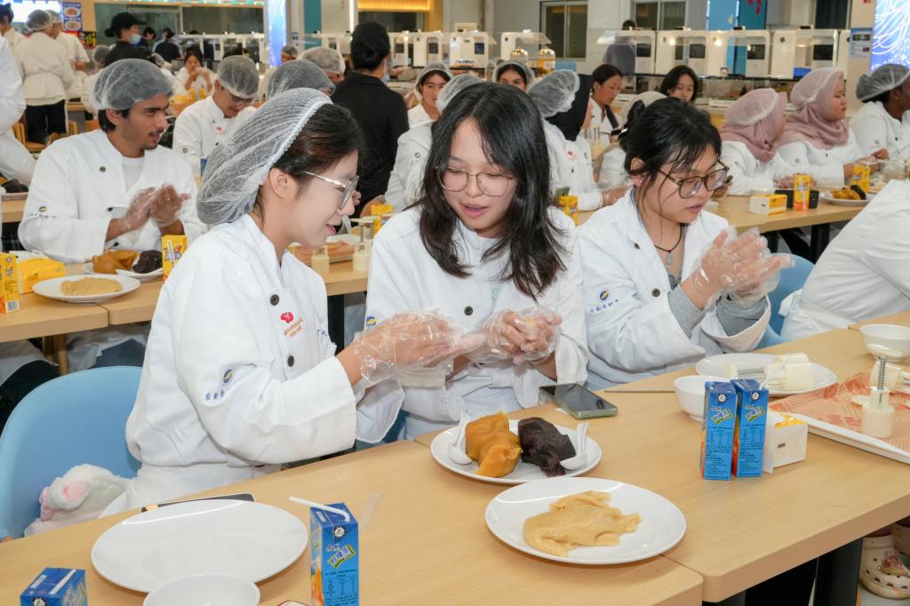 在“巧手做月饼”环节,饮食服务中心两位面点师傅现场教学,传授月饼制作的方法,耐心示范。师生们在师傅的指导下纷纷动手实践,揉面、包馅、压模,现场气氛热烈而温馨。在月饼烘烤间隙,大家还品尝了食堂精心准备的特色美食,交流制作心得。活动还设置了抽奖环节,传递出校园大家庭对学生的浓浓关怀。一炉炉手工月饼陆续出炉,师生们手捧自制的月饼合影留念,镜头定格下一张张灿烂的笑脸。