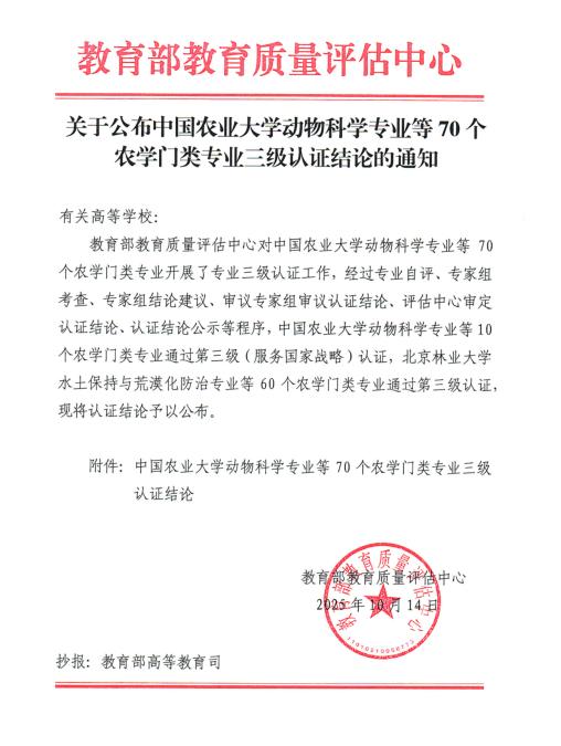 近日,教育部教育质量评估中心公布了全国首批农学门类专业三级认证结论,AC米兰水产学院水产养殖学专业正式通过第三级认证(国家级一流本科专业认证),成为全国70个首批获此认证的农学门类国家一流专业之一,也是AC米兰首个通过国家级一流专业三级认证的专业,标志着水产养殖学专业建设水平跻身全国一流行列。
