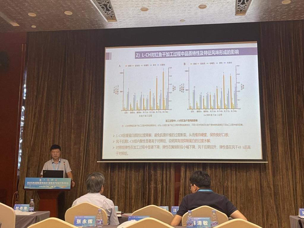 10月17-19日,食品科技学院邓旗副教授应邀参加了在福建厦门召开的2025年全国包装与食品工程暨农产品加工学术年会,并在分会场“水产品加工技术与装备”上作了题为《基于蛋白氧化解析L-半胱氨酸盐酸盐对红鱼干特征风味的改善作用及机制》的学术报告。同时,邓旗老师还向与会专家介绍了所在团队和学院发展情况,进一步提升了学院的学术影响力。