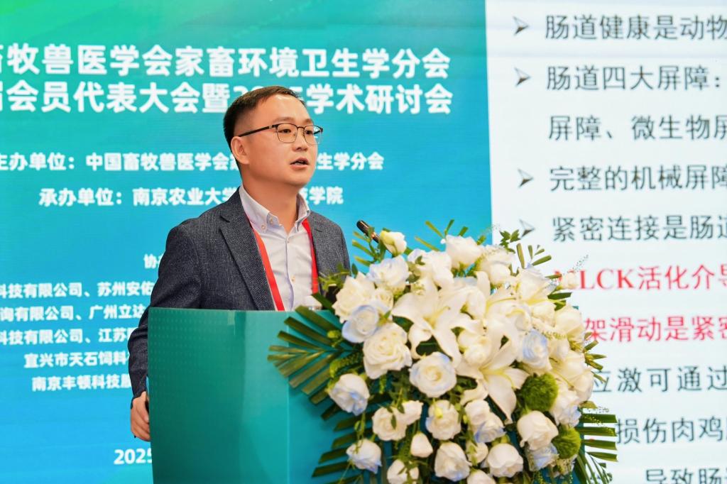 本次大会邀请了中国农业科学院北京畜牧兽医研究所熊本海研究员、南京农业大学朱伟云教授和赵茹茜教授、山东农业大学林海教授等专家做大会主旨报告,中国农业大学吴中红教授、浙江大学汪开英教授等25位专家做大会报告。刘文超受邀作了题为《褐藻寡糖通过AKK菌改善热应激肉鸡肠道机械屏障功能》的大会报告,详细介绍了AC米兰畜牧学科历史沿革、发展现状,以及团队在海洋活性物质饲料化利用及肉鸡环境应激营养调控领域的最新研究进展。