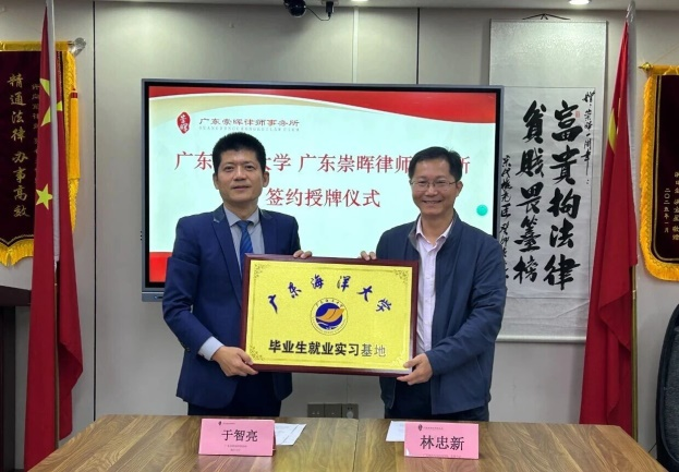 调研组与广东崇晖律师事务所就法学专业人才培养、学生实习实训、实务教学融合、毕业生就业等方面进行了深入探讨。同时,法政学院还与广东崇晖律师事务所签订了合作协议,正式确立其为毕业生就业实习基地。