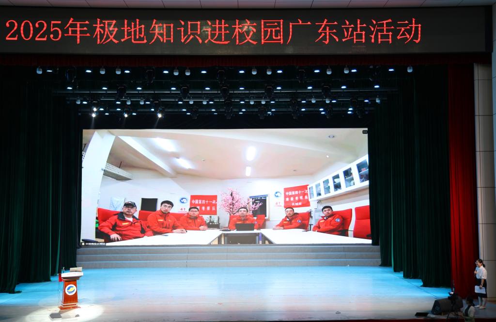 活动高潮出现在与南极长城站的实时视频连线环节。第41次南极考察队长城站站长邵和宾通过镜头带领同学们“云游”长城站,并回答了同学们关于极地生活、科考条件、职业路径等方面的提问。现场气氛热烈,掌声不断。
