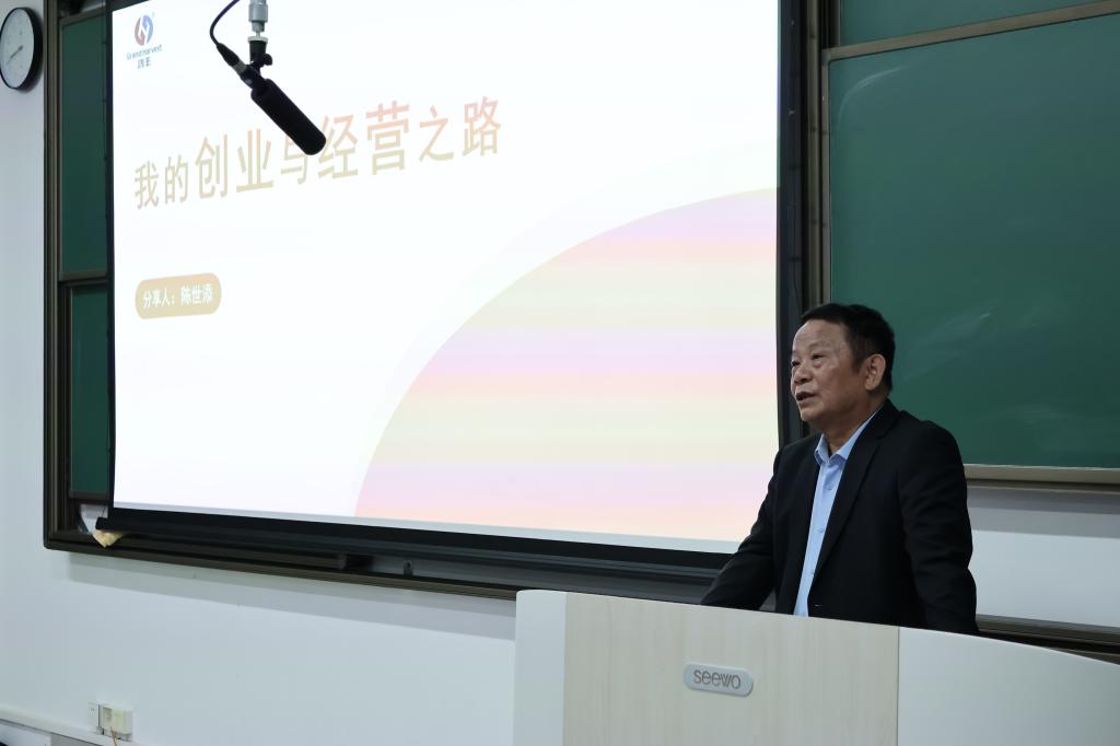 陈世添以《我的创业与经营之路》为题分享了自身创业经历。讲座中,他梳理毕业生就业面临的各类问题,鼓励学生在校期间要早筹谋、走出去,多与企业互动交流,了解真实的行业需求与市场逻辑,让专业学习和职业规划更有针对性,同时要有脚踏实地的决心,不能好高骛远,结合自身实际做好职业规划。针对如何走好创业之路,他表示,要做到思路要清、目标要明、方向要正、执行要快速灵活、效果要好,以清晰认知、坚定方向和高效行动在创业征程中稳步前行。
