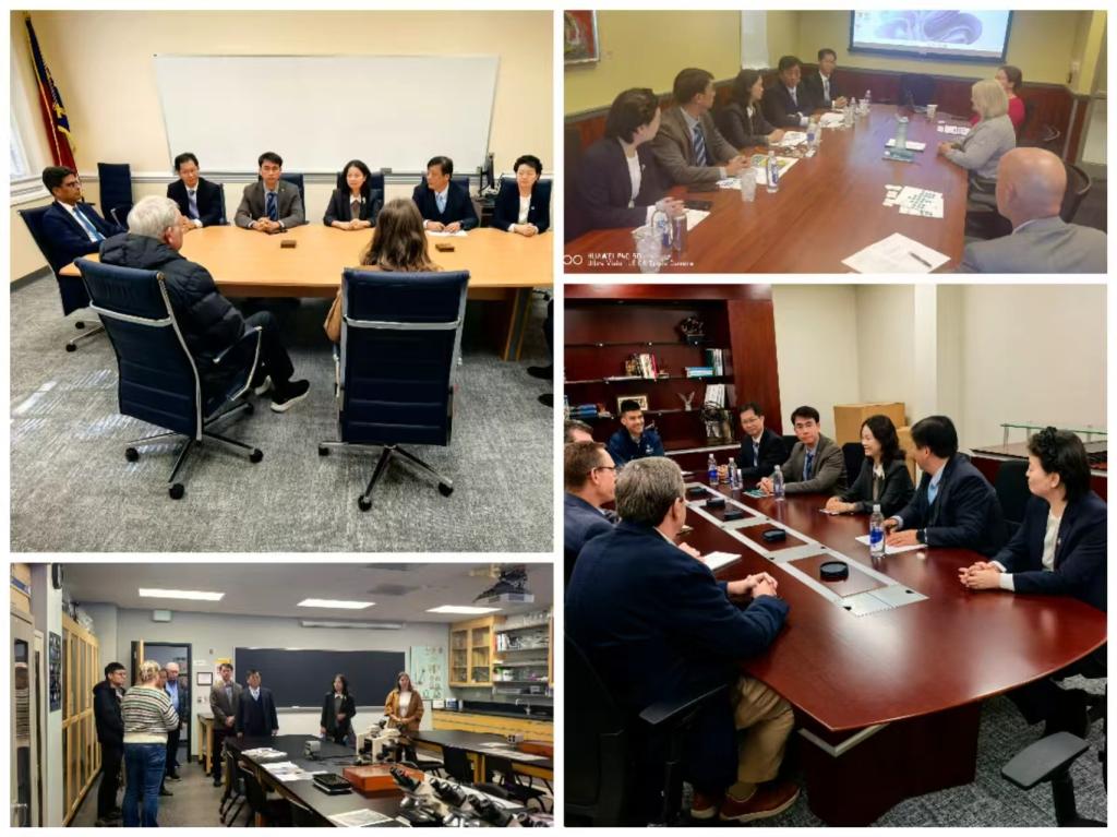访问期间,代表团先后与北卡威尔明顿大学校长Aswani Volety及学生事务中心、国际交流中心、财经学院等部门负责人展开座谈交流。学生事务副校长Dr.Christine Reed Davis详细介绍了部门组织架构,涵盖职业规划指导、心理健康服务、社团活动、住宿生活管理及大数据平台等方面情况;国际交流中心Dr. Jennifer Fernandez-Villa分享了其在全球招生、语言支持和跨文化适应培训方面的成熟经验,双方就学生深造和暑期访学达成初步共识;财经学院经济与金融系主任Dr.Ethan Watson介绍了其MBA项目、CFA合作培养计划及创新创业课程体系,突出强调产教融合与行业认证导向的教学特色,双方围绕“2+2”联合培养、“3+1”联合培养、财经管理与咨询等合作模式展开深入探讨。座谈会后,在海洋科学中心Ms.Jana Carver的陪同下,代表团实地参观了海洋科学中心实验室及采样船,深入了解该校在海洋科学研究、人才培养及实践创新教育方面的先进经验,双方就学生短期交流、学术合作机制等议题进行了进一步探讨。