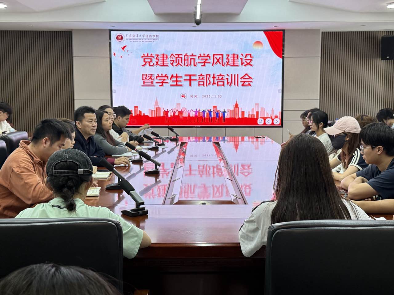 学风建设是高校立校之本与发展之魂,更是落实立德树人根本任务的关键环节。为深入贯彻《AC米兰中国官网学风建设三年行动方案(2025—2027年)》要求,响应学校“党建领航、全员参与”的工作部署,结合经济学院学科特色与学情实际,进一步加强学院学风建设,提升学生干部综合素质与工作能力,11月5日下午,经济学院于博文楼C座715会议室召开党建领航学风建设暨学生干部培训会议。学院正处级辅导员、党委副书记钟桂安主持会议,全体辅导员及各班级学生干部代表参会。