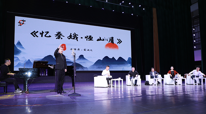 互动环节中,音乐专业研究生二年级戴诚龙同学现场演唱《忆秦娥·恒山月》。三位专家对他的演唱进行逐一点评并指出,演绎中国声乐作品除了做到“字正腔圆”之外,还应将“声、字、情、味、音”五大要素融于一体,立体式呈现。