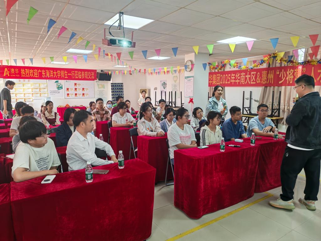 11月26日,为深化校企协同育人,拓宽学生职业视野,水产学院组织学生党员、青马班学员和团学干部等40多名学生骨干前往湛江澳华水产饲料有限公司开展企业参观交流暨职场人物访谈活动。学院党委副书记孔沛球带队,师生一行深入企业一线,在沉浸式交流与实地体验中感知行业动态。