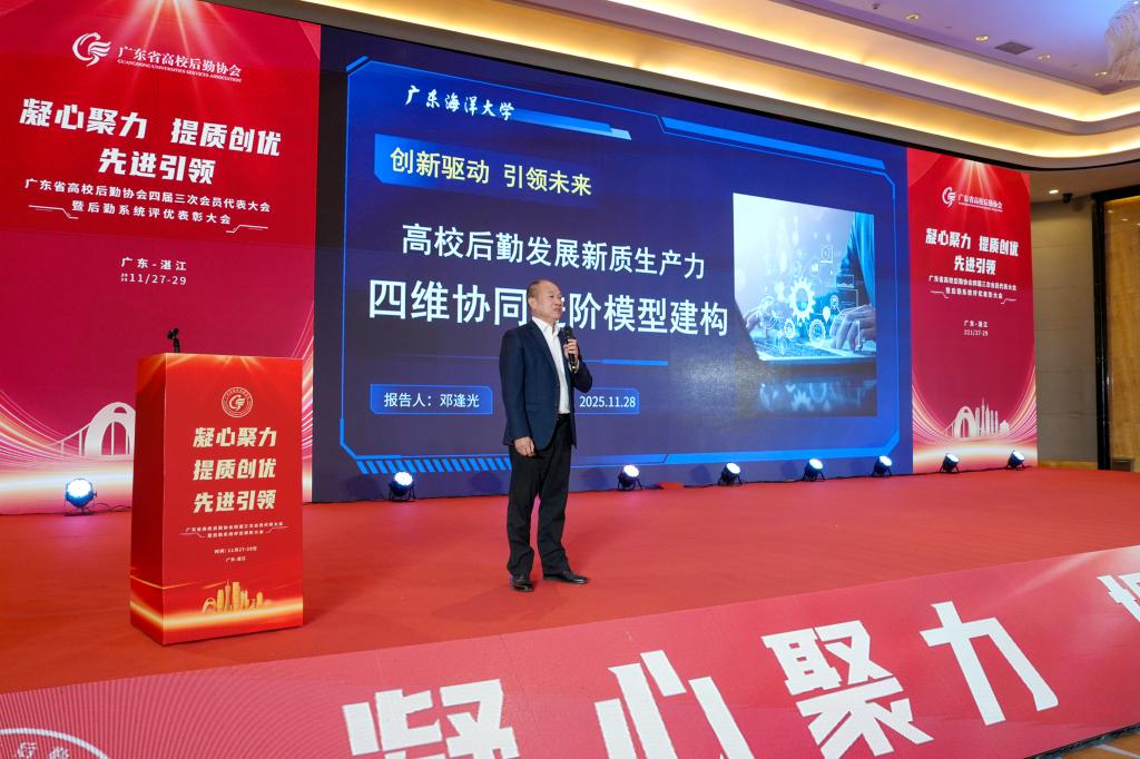 会上,邓逢光代表学校致欢迎辞,并受邀作题为《高校后勤发展新质生产力——四维协同进阶模型建构》的主题报告。报告立足新时代高校发展需求,系统阐述了高校后勤新质生产力的核心内涵与实践路径,提出“四维协同”创新发展模型,为全省高校后勤高质量发展提供了新思路。