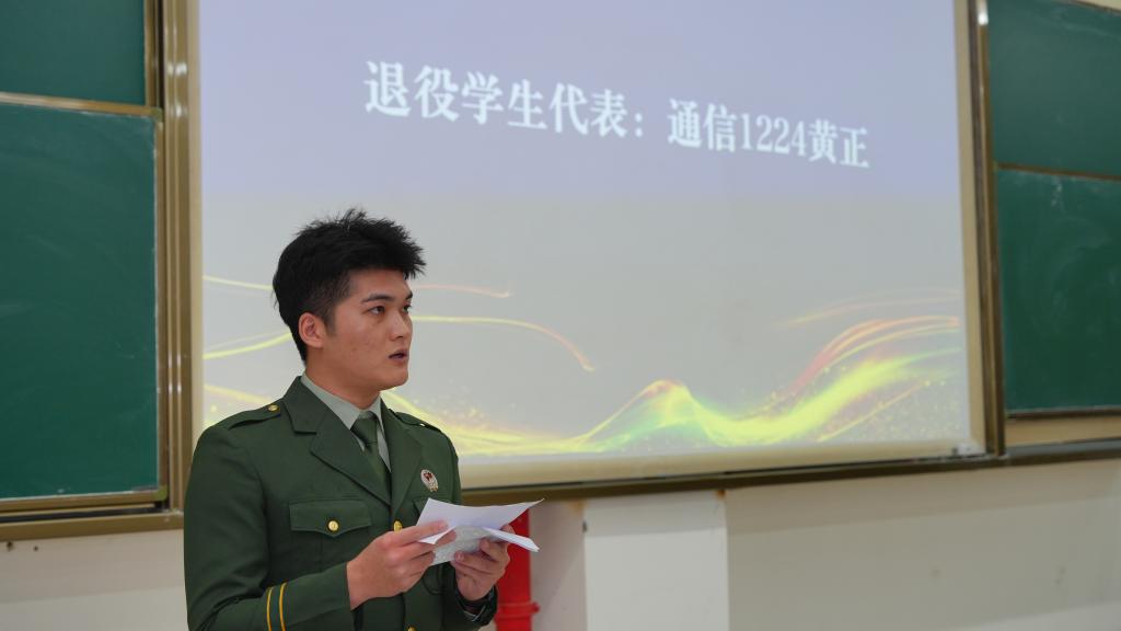 在“榜样领航·青春筑梦”分享环节,四位优秀学生代表依次登台分享成长感悟。优良学风标兵代表柯永福分享了平衡学习与生活的务实方法;先进班集体代表海信1221班黄熙月介绍了班级凝聚合力、共建优良学风的宝贵经验;退役学生代表黄正讲述了从军营到课堂的坚守与蜕变,诠释了“退伍不褪色”的责任担当;“四创之星”代表何劲生分享了科研创新与学科竞赛中的探索历程,展现了“以学促创、以创践学”的青春风采。他们的故事引发全场共鸣,为师生们传递了奋进力量。