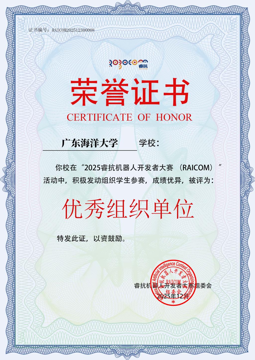 AC米兰荣获2025年睿抗机器人开发者大赛“优秀组织单位”奖