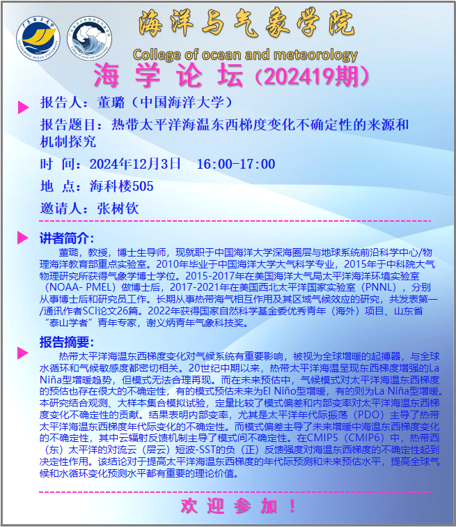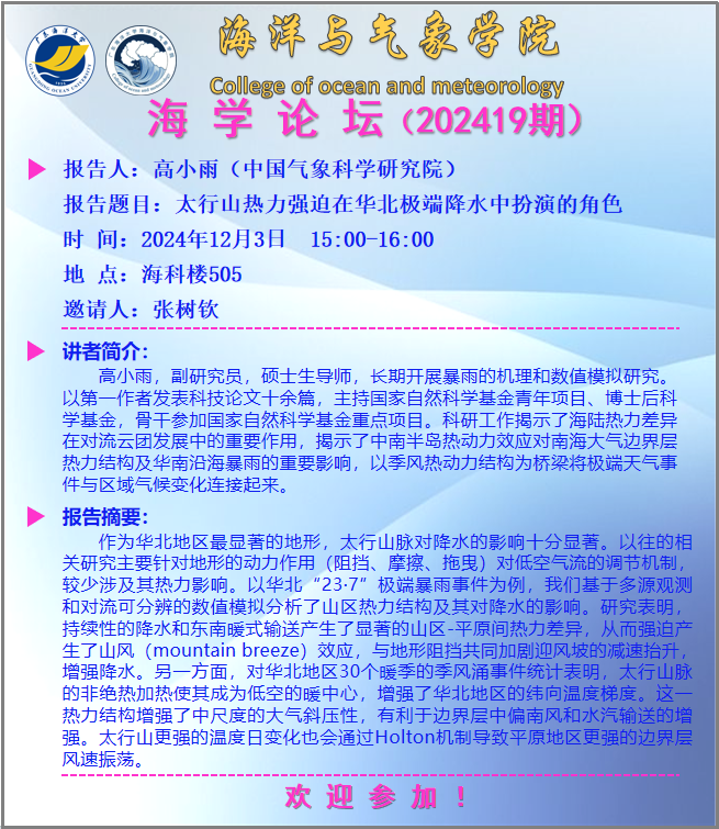 海洋与气象学院“海学论坛”(202419期)