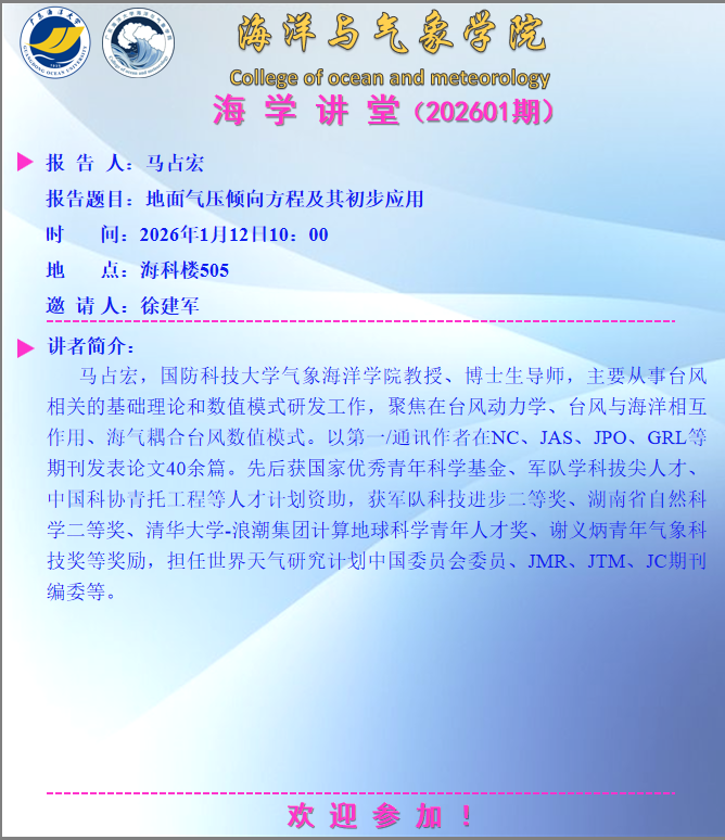 上一篇:海洋与气象学院“海学讲堂”(202602期)
