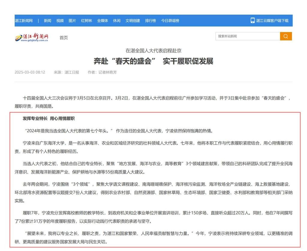 “展望未来,我将以专业之长、履职之责,为湛江和国家繁荣、人民幸福贡献智慧与力量。”今年,宁凌表示将持续深耕专业领域,以更精准的调研、更高质量的建议服务国家发展大局与民生关切。