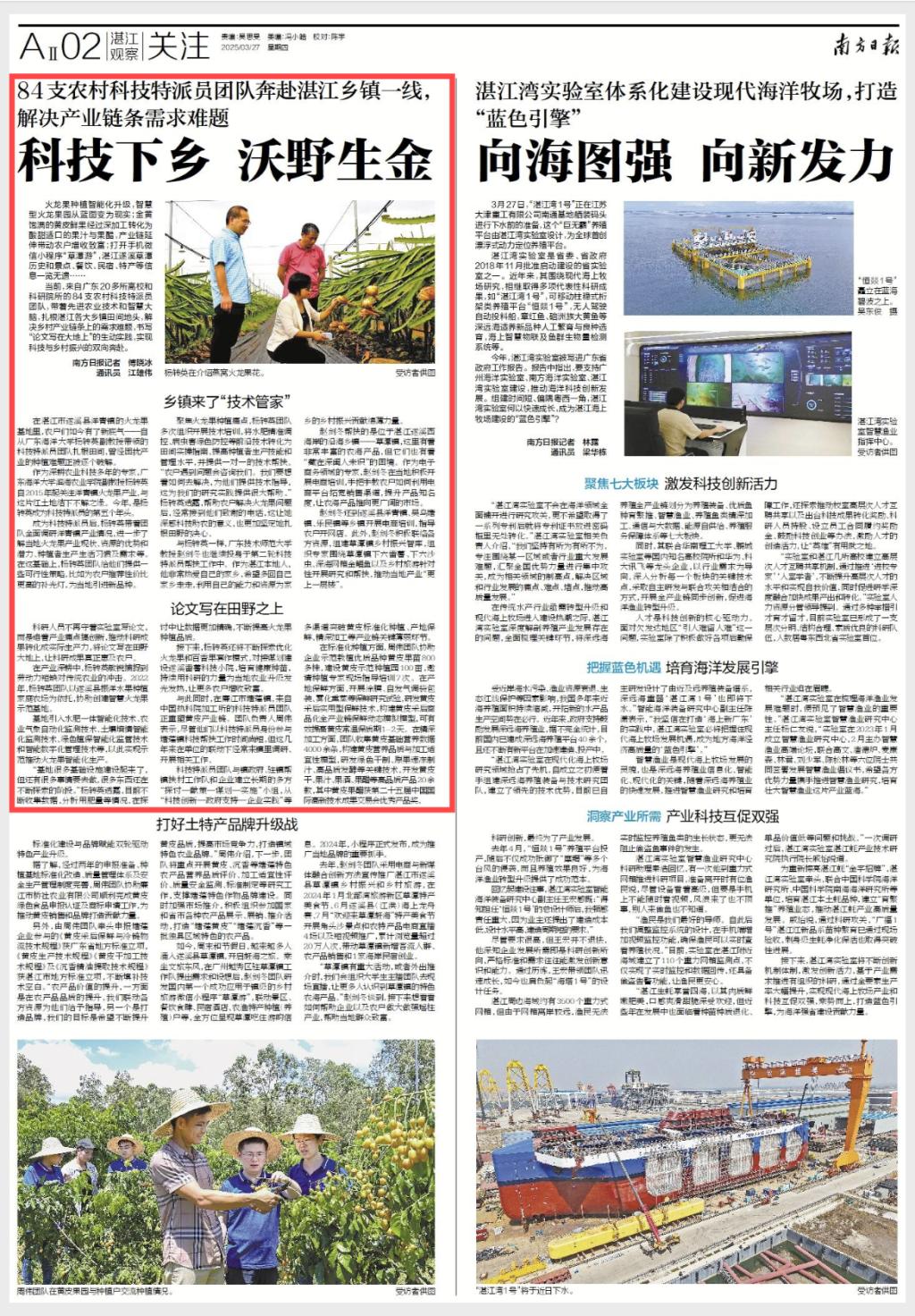 南方日报:科技下乡 沃野生金:84支农村科技特派员团队奔赴湛江乡镇一线, 解决产业链条需求难题