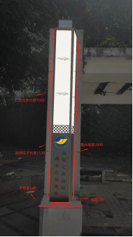 长300MM*宽300MM*2800MM长方体立柱灯,不锈钢拉丝+亚克力板,不锈钢厚度(实厚)为1.5MM,亚克力板厚度为1.5MM,光源4000K,48WLED灯,实物表面的诗歌位置调整至正面亚克力板面,诗歌内容待确定供应商后商定。 |