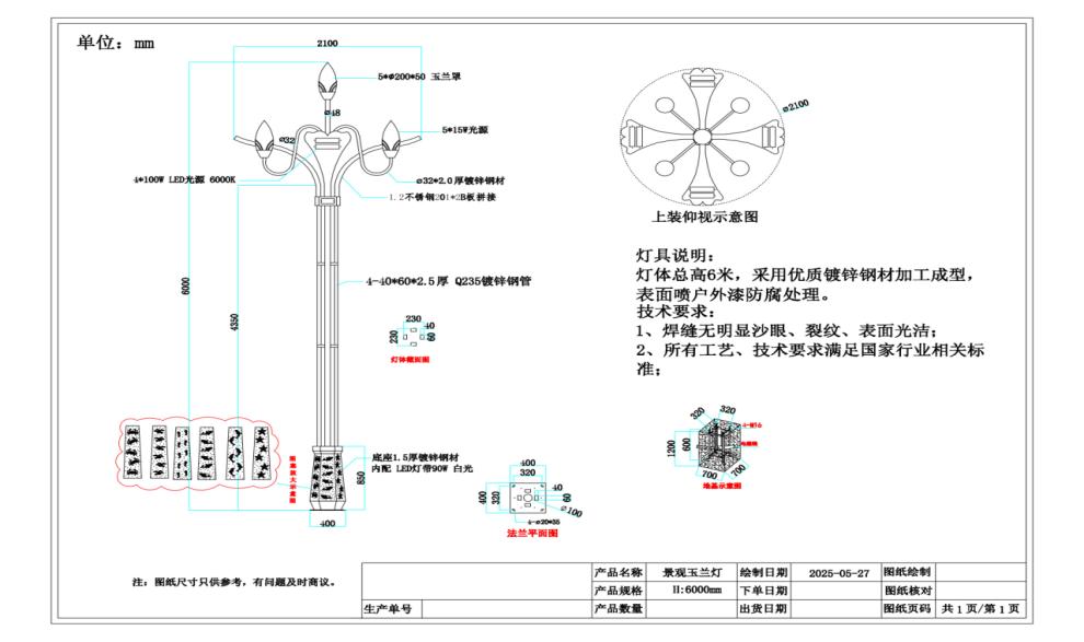 1、高杆莲花灯必须为全新合格品。