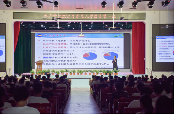 9月15日,水产学院2021年秋季学期书记院长“思政第一课”在湖光校区东区小礼堂开讲,学院党委书记梁朝辉、院长李广丽主讲。水产学2021级新生共450余人到场聆听学习。