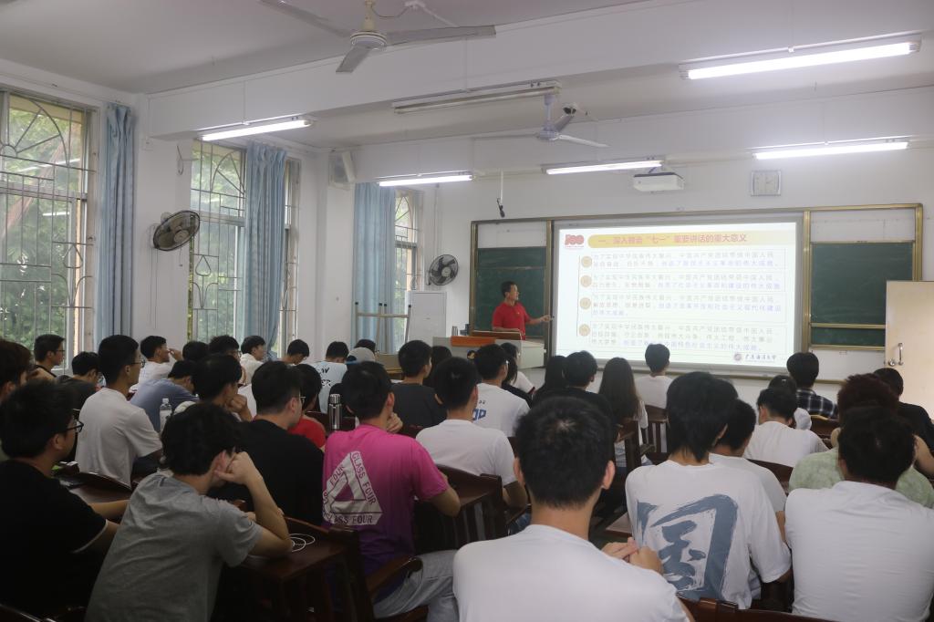 在海滨校区教学楼202室,党总支书记邓伟以《深入学习贯彻习近平总书记“七一”重要讲话精神,与新时代同向同行、共同前进,争当新时代奋发有为青年》为题,从“学习习近平总书记“七一”重要讲话的重大意义,重要讲话提出的重大思想、重大观点、重大论断,贯彻落实好习近平总书记“七一”重要讲话精神”等三个部分,给全体学生党员、发展对象、入党积极分子等百余人讲课。希望大家做到,一要矢志不移听党话跟党走,从党史学习教育中赓续红色基因、凝聚青春奋斗力量;二要牢记全心全意为人民服务宗旨,在奋进中培养大格局、胸中有抱负;三要坚持不懈奋斗,努力学习,增长本领,在青春搏击中绽放绚丽之花。