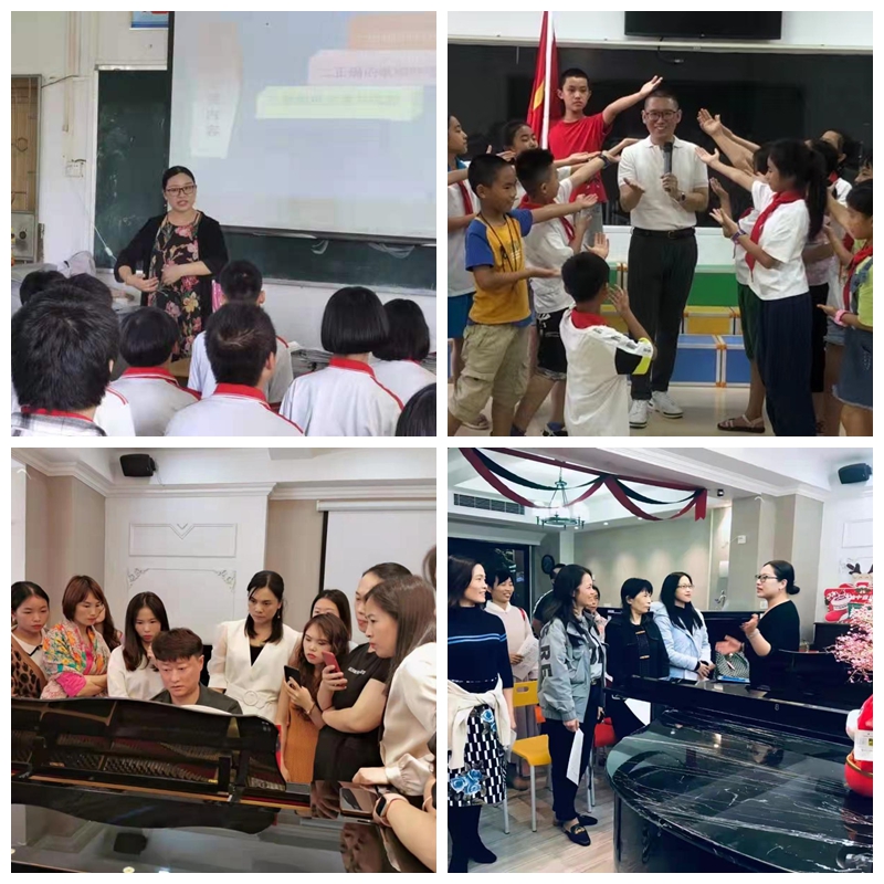 为助力本市中小学提升师资美育教学水平,提升学生美育水平,中歌艺术学院党委把“我为群众办实事”实践活动领域延伸到了校园之外,对接湛江市麻章区太平中学、太平中心小学、麻章中学小学部、湖光中心小学等4所中小学,开展了“美育浸润行动计划”和“社会公益音乐普及计划”。学院抽调17名教师和研究生组成音乐、舞蹈、美术、影视传媒4个小组,结合各学校美育工作特点,分别开设相关课程,推进每所中小学美育教育日常化、多样化、特色化,将美的种子播撒进孩子的心田。