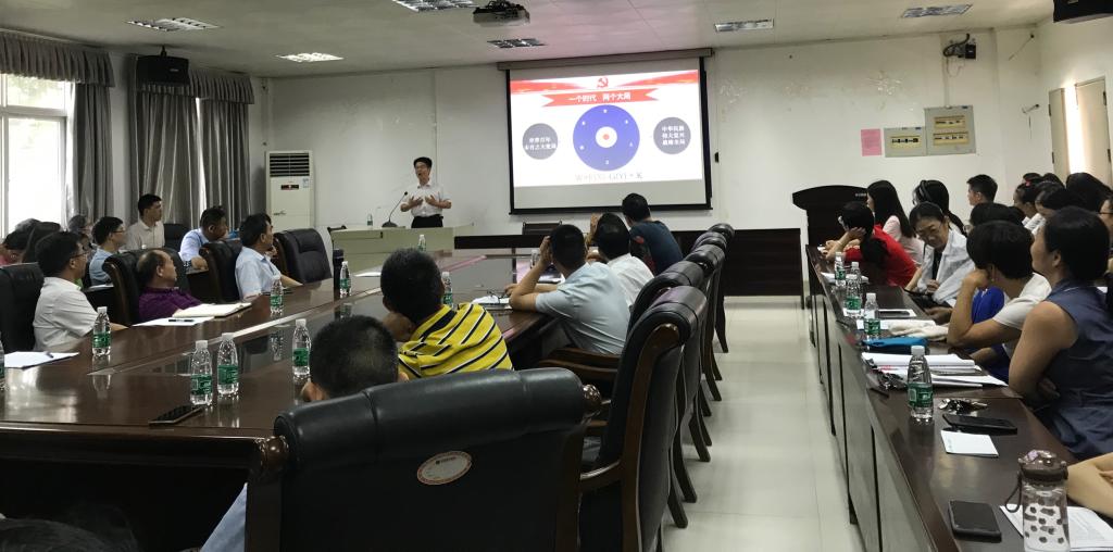 6月28日上午,食品科技学院在湖光校区第三实验楼A105会议室举行了学习贯彻广东省第十三次党代会精神宣讲报告会。报告会由学院党委书记苏永华主持,学校党委理论宣讲团成员巩建华教授主讲,学院领导、全院教职工和学院全体学生党员100余人参加了报告会。