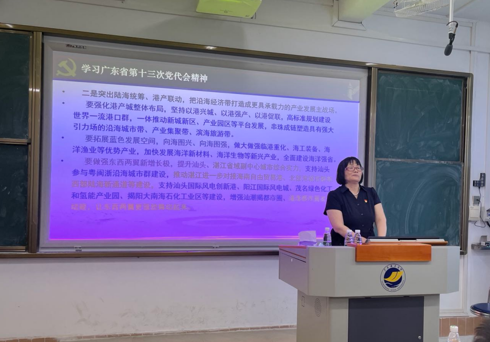 为深入学习贯彻中国共产党广东省第十三次代表大会精神,组织引导学院师生党员把思想和行动统一到省党代会精神上来,6月23日下午,海运学院党委在海滨校区实验楼224教室举办学习贯彻广东省第十三次党代会精神宣讲报告会。宣讲报告邀请学校党委理论宣讲团成员、马克思主义学院王爱云教授作专题宣讲。报告会由海运学院党委书记张懿主持,学院师生党员90余人参加了会议。