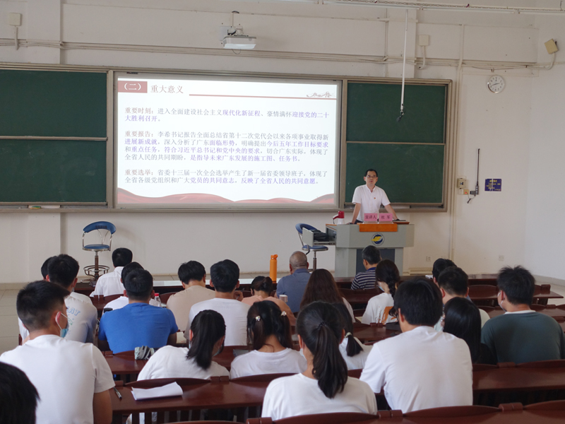 6月27日下午,电子与信息工程学院党委在钟海楼02030室召开学习贯彻中国共产党广东省第十三次代表大会精神宣讲报告会。学校党委理论宣讲团成员、管理学院副院院长杜军教授应邀主讲,会议由学院党委书记宋雅主持,学院全体教职工及学生党员参加了宣讲会。