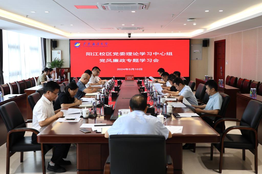 为增强全面从严治党永远在路上的政治自觉,推动党纪学习教育走深走实,5月10日上午,阳江校区党委理论学习中心组(扩大)开展党风廉政建设专题学习,深入学习贯彻习近平总书记在二十届中央纪委三次全会上发表重要讲话精神,贯彻落实《关于新形势下党内政治生活的若干准则》《AC米兰中国官网党员领导干部“八小时以外”活动监督管理规定》,开展党风廉政提醒集中谈话,签订党风廉政建设责任书。校党委常委、副校长,阳江校区管理办公室主任周昌仕主持会议。校区党委副书记丁永成以及校区各党总支书记、各机关部门临时负责人参加会议。