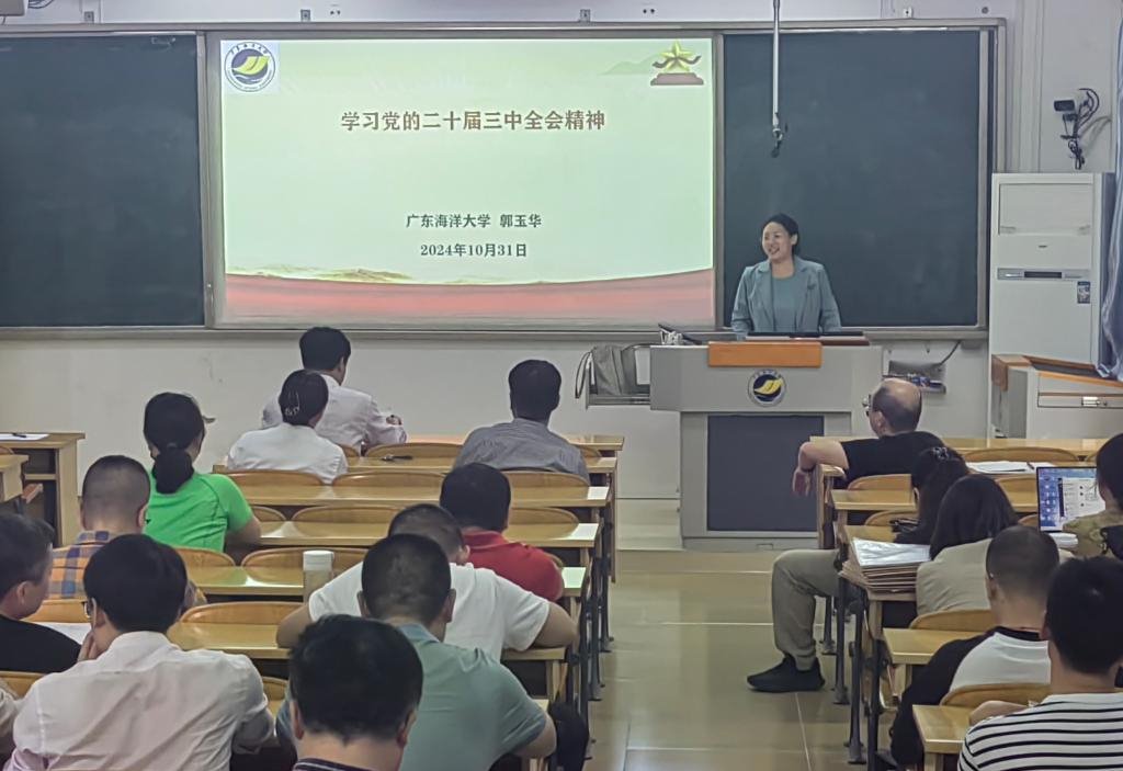 11月6日,海洋工程与能源学院党委召开学习贯彻党的二十届三中全会精神宣讲报告会。学校理论宣讲团成员、马克思主义学院郭玉华副教授应邀为全院教职员工作党的二十届三中全会精神宣讲报告。学院党委书记李国芳主持报告会,全体教职员工参加会议,聆听了报告。