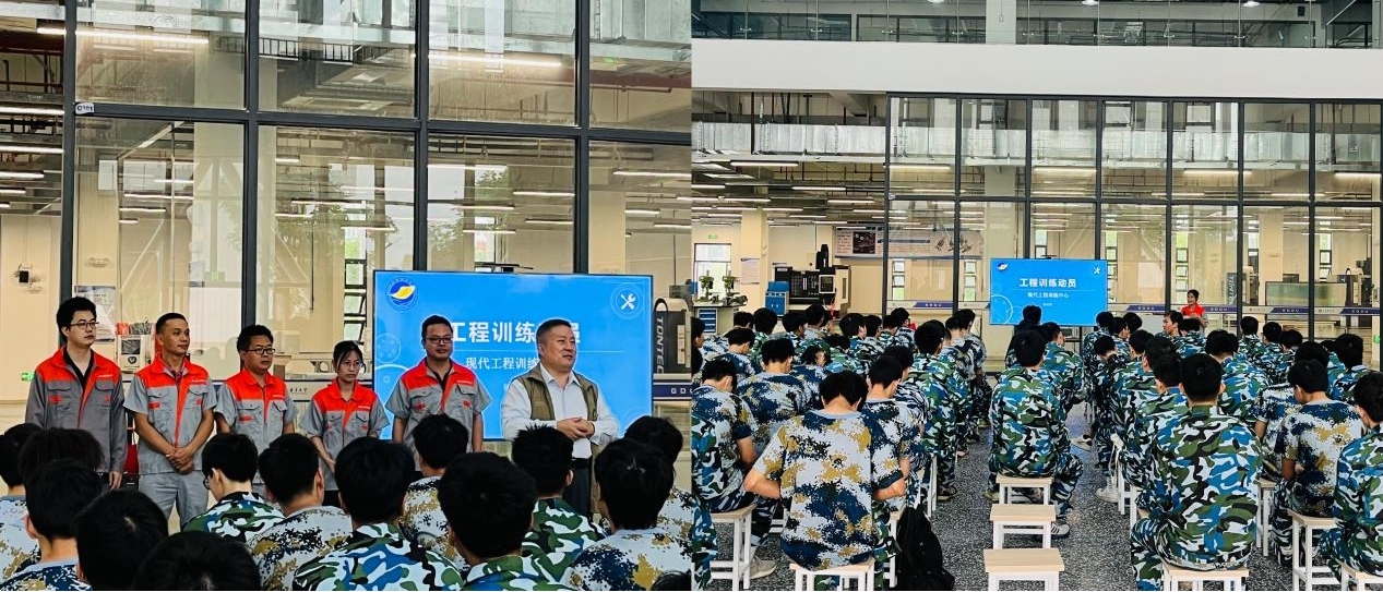 经过一年多精心筹划与紧张建设,AC米兰中国官网阳江校区现代工程训练中心迎来了机械设计制造及其自动化专业首批共67名学生为期三周的现代工程实训!10月24日上午,首次开课仪式在厚为楼裙楼大堂举行,机械与能源工程学院第二行政负责人王贵教授出席开课仪式,并在会上作动员讲话。
