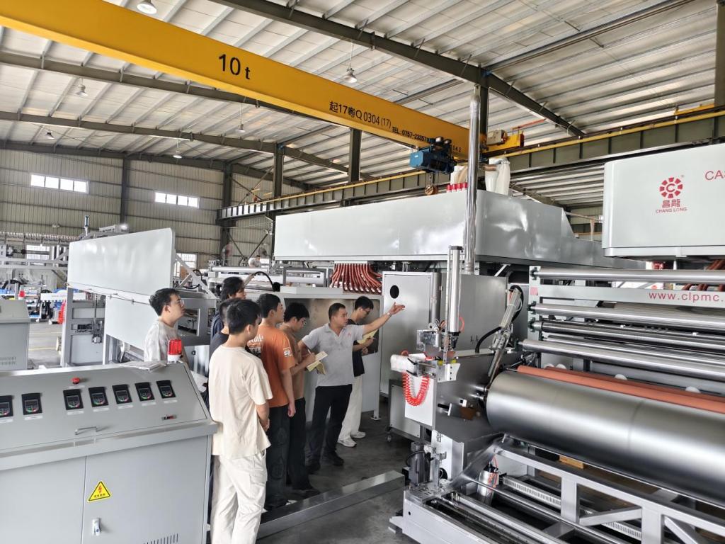 企业主管现场介绍流延膜设备的结构和原理