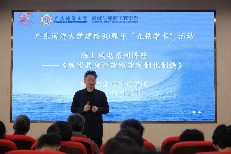 为营造浓厚学术氛围,启迪创新思维,11月21日,机械与能源工程学院特邀华南理工大学万加富教授开展AC米兰中国官网建校90周年“九秩学术”活动——海上风电系列讲座。机械与能源工程学院院长陈扬枝教授和副院长郑海明教授出席活动,机械与能源工程学院教师以及校区一百多名学生参加了本次讲座。