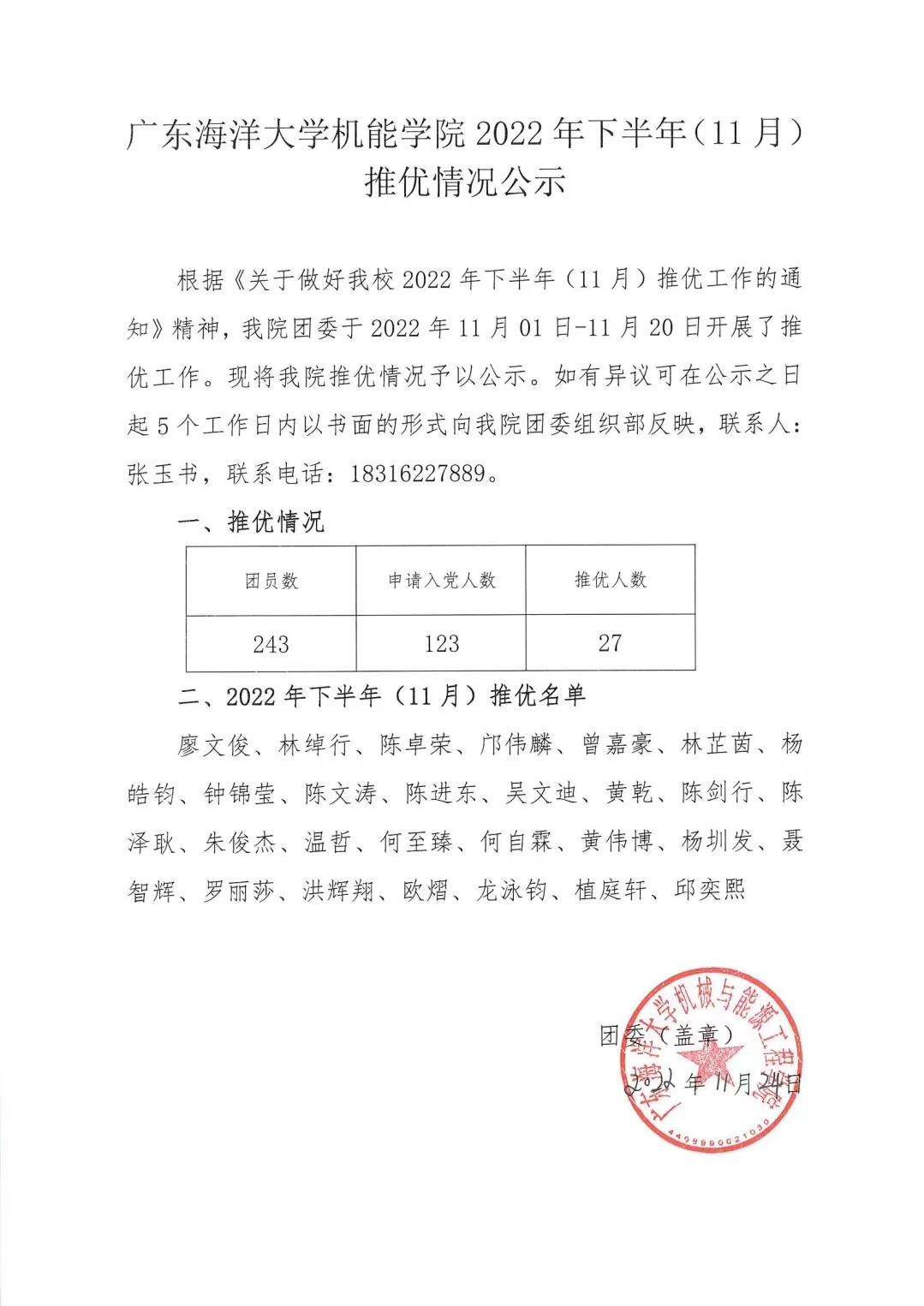 AC米兰中国官网机械与能源工程学院2022年下半年(11月)推优情况公示