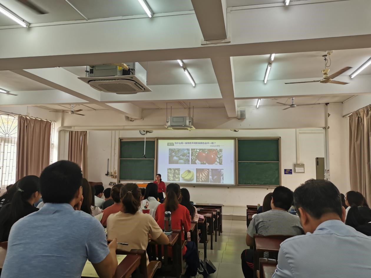 刘亚月博士讲授了《食品化学》中的“色素及色素的分类、化学结构和性质”内容。重点讲授了叶绿素的结构、类别以及影响因素。授课中借助了雨课堂小程序来辅助课堂教学,与学生保持良好的互动,对学生的吸引力强。刘博士教学内容逻辑性强,深入浅出,启发式教学,体现了以学生为主的教学理念。
