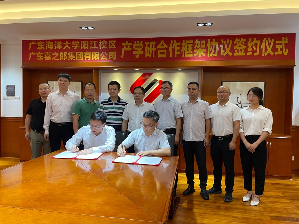 在随后召开的交流合作会上,我院教师队伍与喜之郎高管团队亲切交流,双方开展座谈会,达成强强联手合作共赢共识,并现场签署双边产学研战略合作框架协议,为科研项目合作、产品质量提升、新产品研发、学生实习基地建设、企业奖学金设立等方面做了强有力的铺垫支撑。