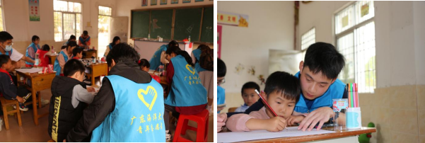 随后,小朋友回到各班课室,进行了绘画教学。本环节采用一对一教学模式,每个“小老师”都在认真的教小朋友画画。大家都全身心的投入作画,孩子们有着丰富有趣的内心世界,画出心之所想,尽情的表达他们内心的想法。我们希望通过绘画,用心灵感受心灵,走进他们的世界。