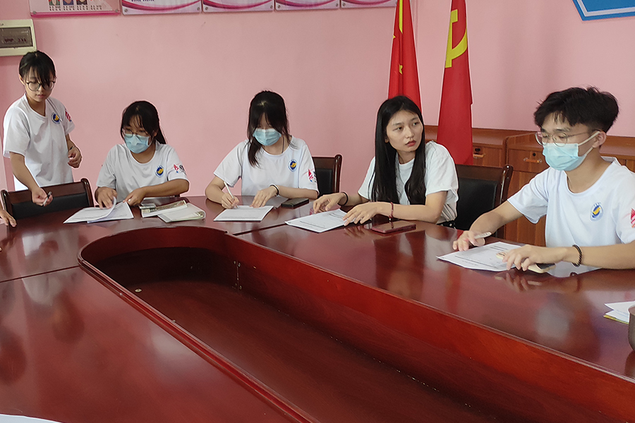 图为实践队成员在潭簕村妇女之家签订“双百工程”服务志愿意向书。伍倩文 供图