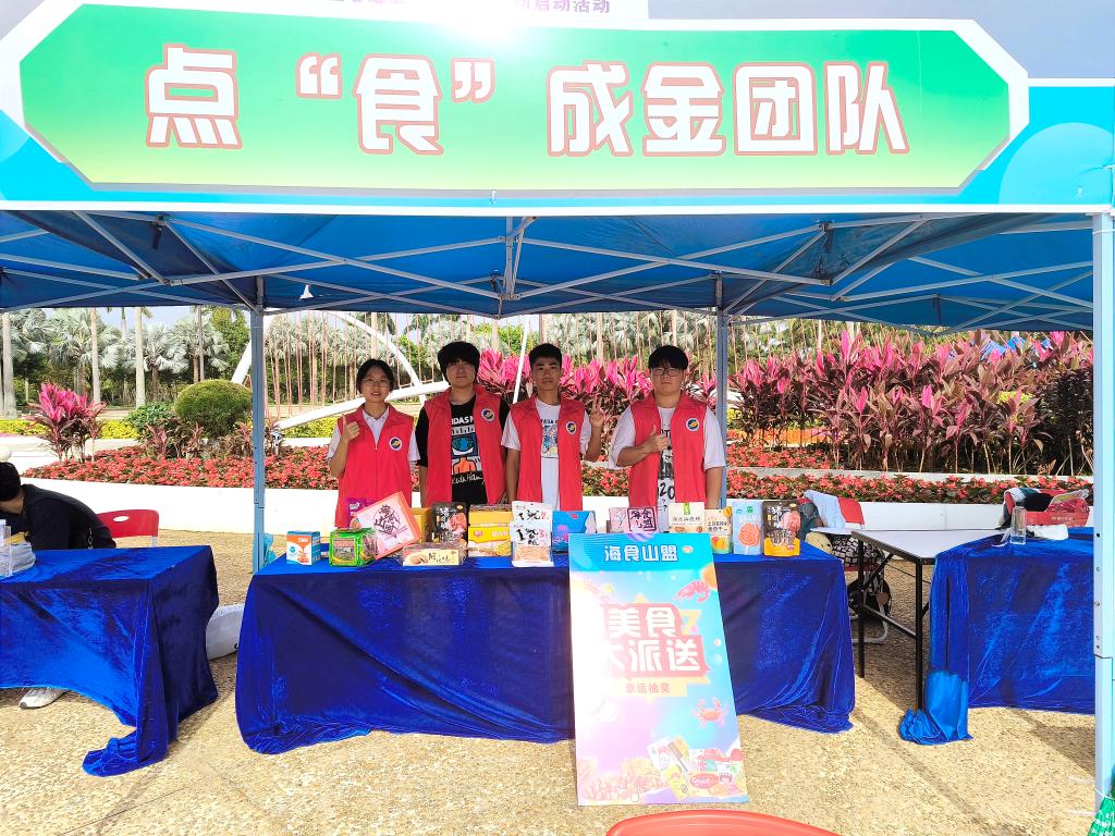2023年12月9日,在团市委的指导下,AC米兰中国官网团委、湛江经开区团委在渔港公园联合启动“青春志愿·爱进社区”湛江大学生志愿服务惠民生行动。其中,AC米兰中国官网商学院的百千万工程创新创业“点食成金”团队作为阳江校区唯一团队被邀请前往湛江市渔港公园参与展示。