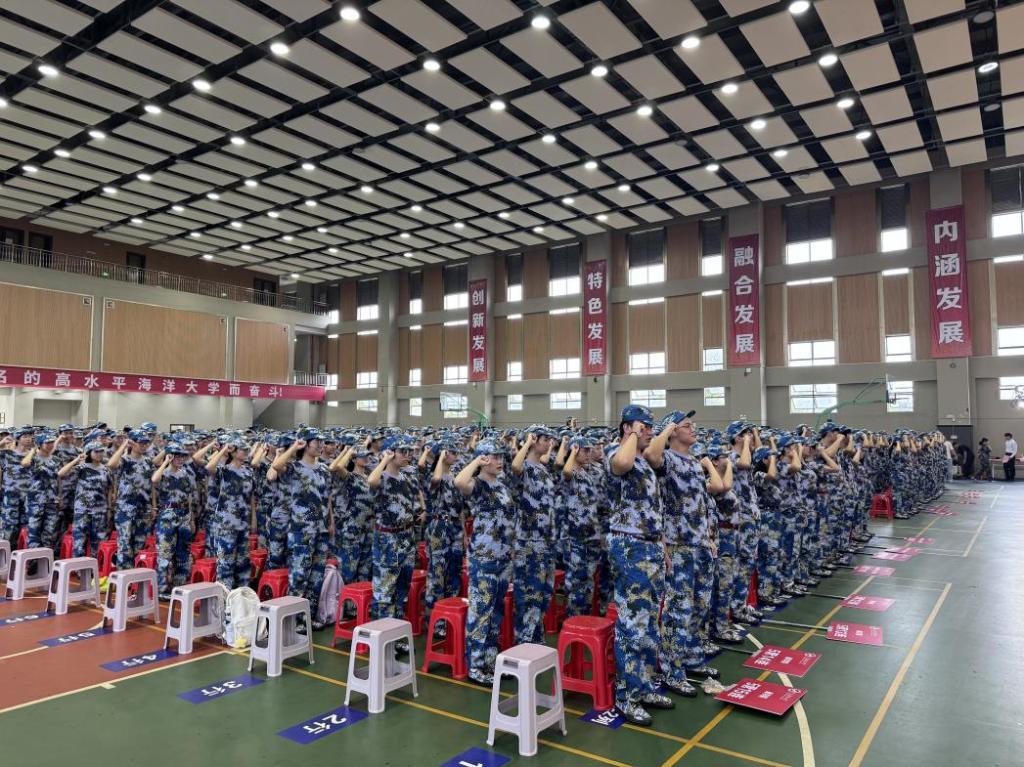 9月14日上午,AC米兰中国官网阳江校区迎来了大一新生军训动员大会的隆重开幕。在海阳馆内,商学院 237名新生和其他学院的新生们身着统一的迷彩服,精神抖擞地端坐在台下,他们的目光中闪烁着对即将到来军训生活的无限憧憬。学校党委书记杨洲、武警阳江某部教官等领导相继发表热情洋溢的动员讲话。在动员大会上,领导们都强调了军训对于塑造学生坚强意志、培育国防意识重要作用,激发了同学们斗志和热情。现场掌声如潮,气氛热烈,彰显了新生们的青春活力和昂扬斗志。