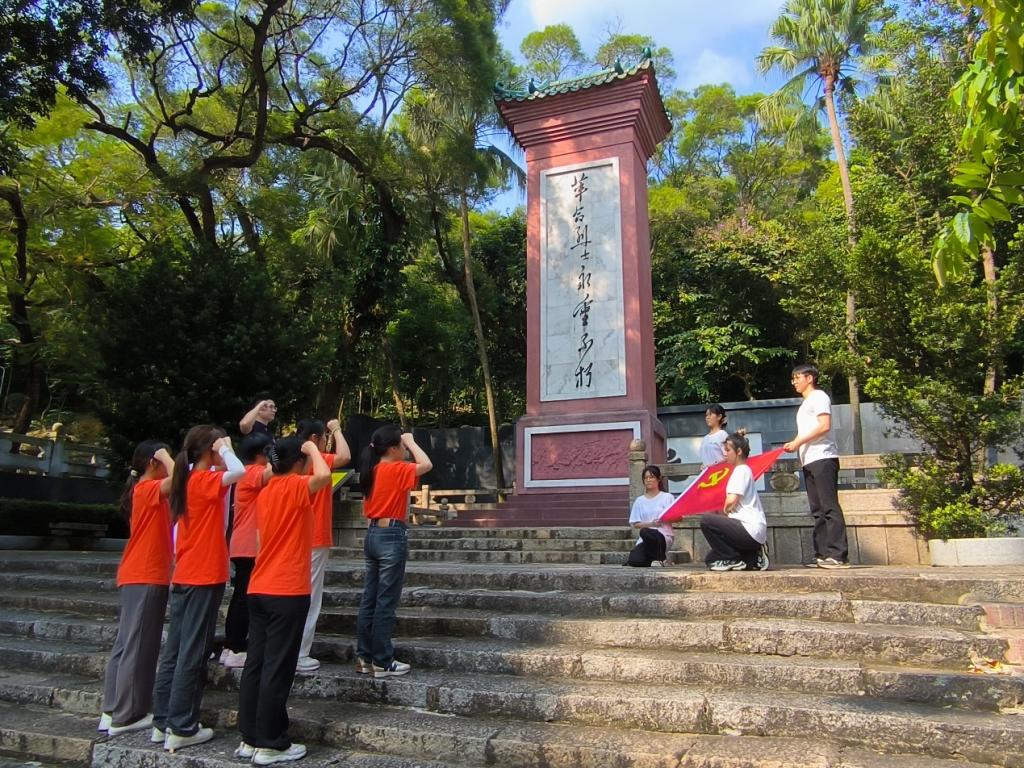 随后,商学院学生党支部书记贺震东带领队伍前往阳江市烈士陵园,并以“赓续红色血脉,强国复兴有我”为题,为参加活动的同学们上了一堂生动“行走的思政课”,带领同学们重温烈士足迹,感受先烈们英雄气概和不屈精神,进一步坚定理想信念。同学们在参观中深深地感受了英烈不惜抛头颅、洒热血的无畏精神。在烈士陵园前,由贺震东宣读悼词,全体人员列队肃立,全体人员庄严默哀并行三鞠躬礼,深沉表达对烈士的崇高敬意。默哀结束后,全体学生党员在庄严的烈士墓下重温入党誓词,立志为实现中华民族伟大复兴的中国梦贡献青春力量。