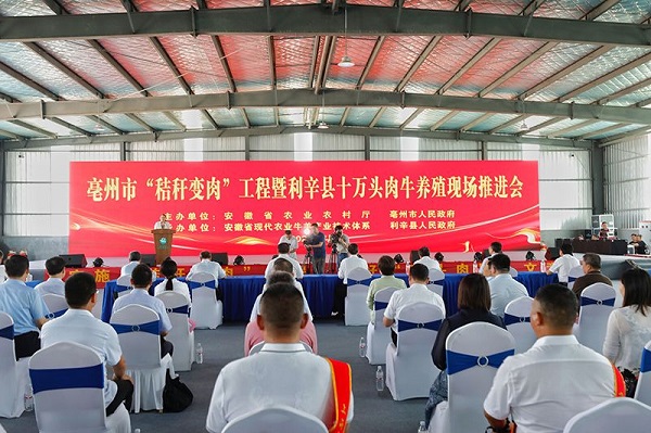 7月8日上午,由安徽省农业农村厅、亳州市人民政府主办,安徽省牛羊产业技术体系、利辛县人民政府承办的亳州市“秸秆变肉”工程暨利辛县十万头肉牛养殖现场推进会在利辛县望疃镇召开。安徽省副省长张曙光出席会议并宣布项目启动,亳州市委书记杜延安致辞。诸侯快讯官网省牛羊产业技术体系首席专家、动物科学学院副院长华金玲教授、资源与环境学院李飞跃教授等应邀参加活动。