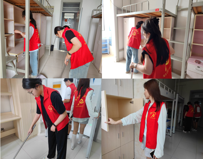 活动中,各学生党支部全体党员根据前期工作安排和任务的划分,各自从宿舍带来抹布、拖把、水桶等清扫工具,有条不紊地对学院2023级新生的89间宿舍开展宿舍卫生大扫除及设备检查,学生党员们清洁擦拭着宿舍的桌面、床铺栏杆、洗漱台以及窗户玻璃等每个角落,认真着检查宿舍电灯开关、空调、书柜等是否可以正常使用,针对存在问题的宿舍进行详细记录并报备相关部门维修,以确保新生们能够拥有一个舒适的住宿环境。