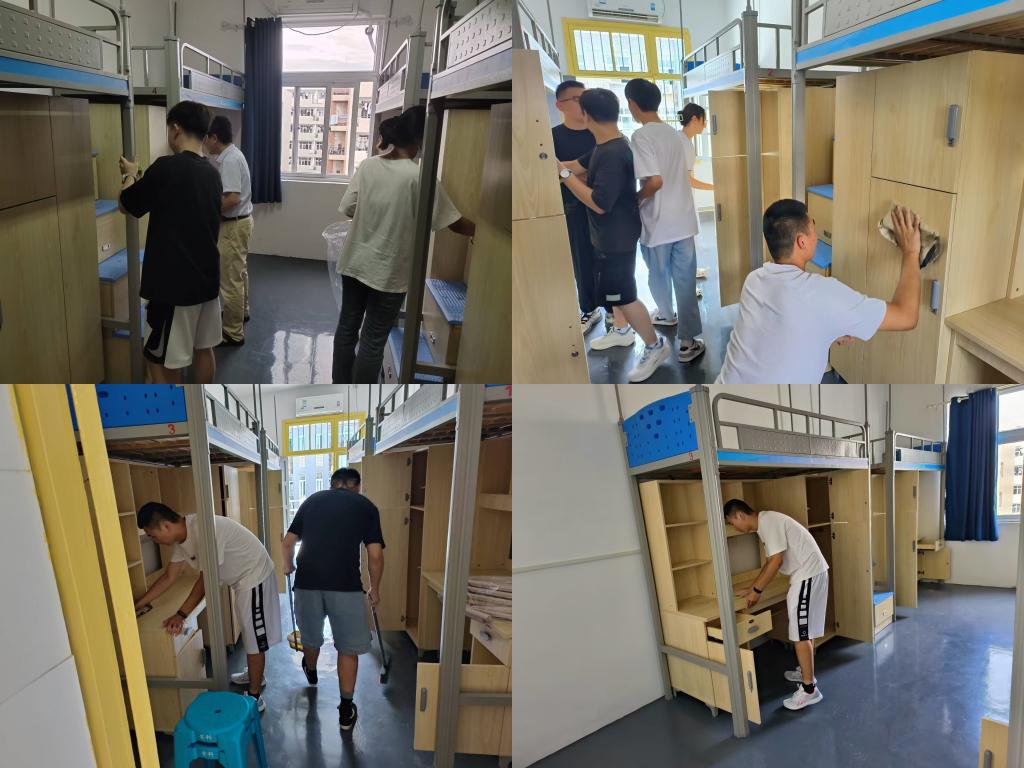 为进一步营造干净整洁、温馨舒适的住宿环境,在学生公寓管理服务中心组织开展学生公寓区环境美化亮化和学生宿舍卫生保洁等相关工作基础上,9月3日,学院自备扫帚、抹布、垃圾袋等工具,辅导员老师带领学生党员等人员对即将入住新生的宿舍进一步进行环境清洁与优化。(作者:朱小小 摄影:陈碧莲 谷杨阳 周厚宇)
