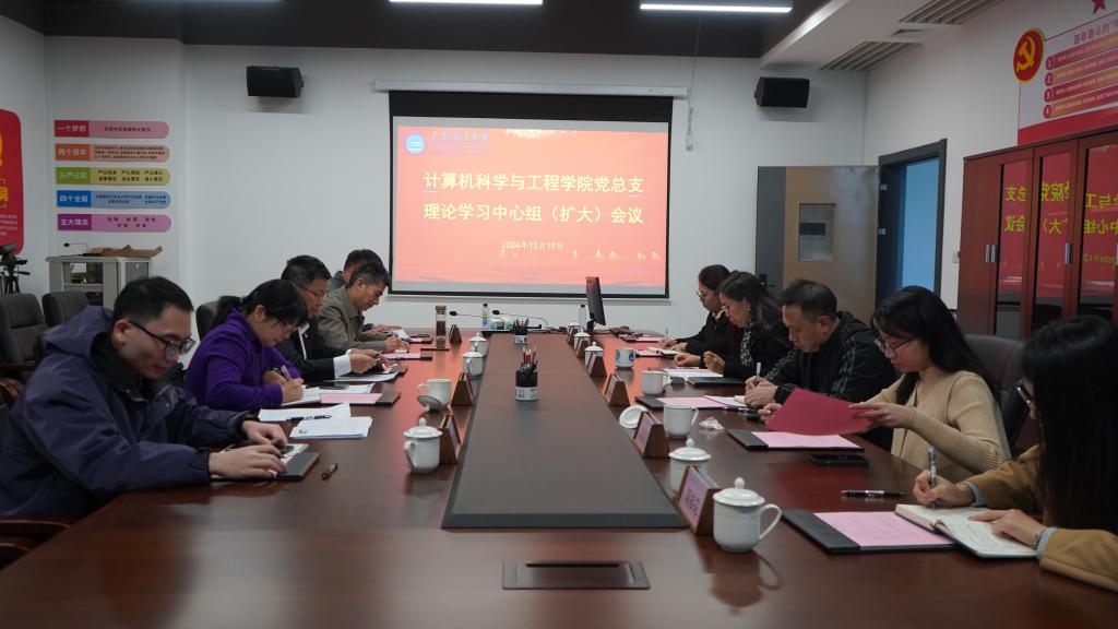12月19日,计算机科学与工程学院党总支理论学习中心组(扩大)会议在厚为楼904会议室召开。校区党委副书记丁永成,校区党委委员、组织人事部部长刘波列席旁听。会议由学院党总支书记刘利群主持。会上,刘利群领学了习近平在省部级主要领导干部学习贯彻党的二十届三中全会精神专题研讨班开班式上发表的重要讲话精神。结合工作实际,刘利群提到,要将立德树人作为根本任务,守正创新谋发展,凝心聚力向未来,不断探索学科专业建设...