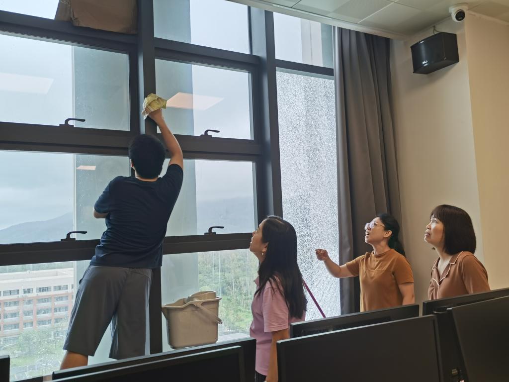 9月25日,台风“桦加沙”影响过后,计算机科学与工程学院第一时间启动灾后安全排查工作。学院党总支书记刘利群、副院长赵男男带队,深入各办公室、实验室,全面检查设施设备相关情况。