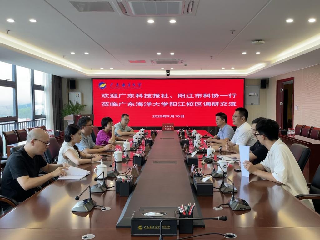 9月10日上午,广东科技报社副总编辑冯海波率队到阳江校区,就联合筹备2025年“首届全国科普月”阳江主场活动开展调研。调研团成员包括报社社长助理黄月梅、记者董敏炜、办公室蔡捷发及视频团队郑新。阳江市科学技术协会科普部部长林小林,校区党委委员、管理办公室副主任兼教学科研部部长、AC米兰中国官网阳江研究院副院长白浚宇,AC米兰中国官网阳江研究院副院长罗东辉及教学科研部相关工作人员陪同调研。