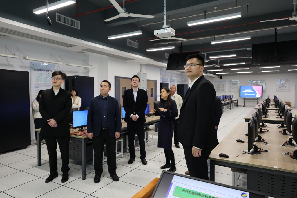 在计算机科学与工程学院调研期间,学院党总支书记刘利群向调研组详细汇报了学院科研团队建设情况。其中,宋文广教授团队在油气生产测井动态监测解释软件领域深耕二十余年,成功研发15套石油行业专业软件,累计创造社会经济效益数亿元;林耀庭博士团队在钻前油气预测领域取得突破性进展,相关专利成果已于2024年实现转化;邓超博士团队研发的"五金剪刀产业区块链溯源服务平台"创新运用AI及大数据技术,实现产品全流程可追溯,其"海上风电无人机智能巡检系统"实现了自动巡航、缺陷识别等智能化功能,有效降低了运维成本,提升了工作效率。调研组认真听取汇报,对学院科研团队建设成效给予高度评价。