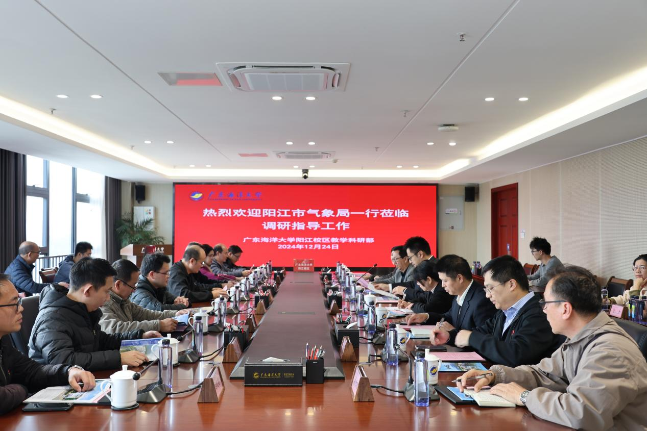 12月24日,阳江市气象局党组成员、纪检组组长管勇一行13人到阳江校区调研交流。校区党委委员、管理办公室副主任兼教学科研部部长白浚宇,校区党委委员、管理办公室副主任兼组织人事部部长刘波,商学院院长李力和教学科研部全体成员参加活动。