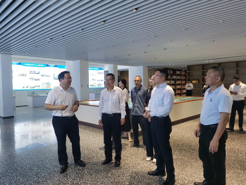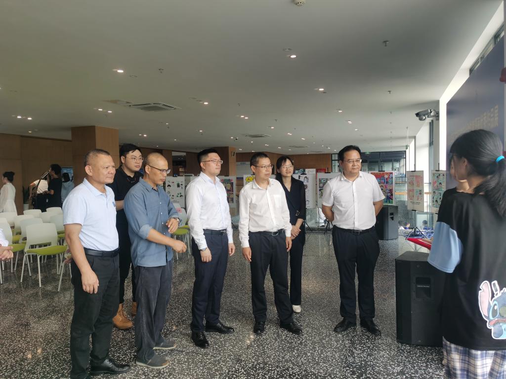近日,学生事务部在校区图书馆举办了2023年阳江市高校防范金融诈骗漫画优秀作品展暨金融消费者权益保护宣传活动,国家金融监督管理总局阳江监管分局局长刘小群、副局长徐志莲,中国银行股份有限公司阳江分行行长肖华,阳江市银行业协会副会长谭飞,阳江校区党委委员、管委会副主任陈永强以及学生事务部副部长翁江峰出席活动并为获奖同学颁奖。随后,商学院李力院长陪同参观了济航楼。