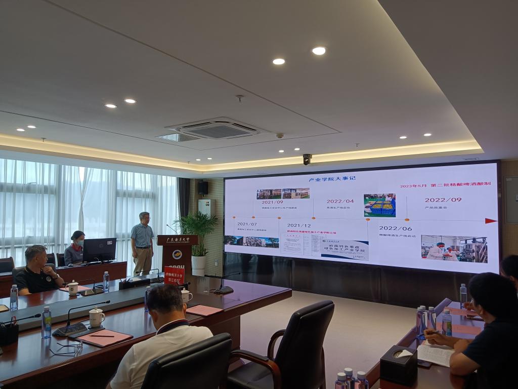 朱思明汇报岭南特色果蔬绿色加工产业学院建设情况